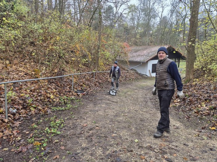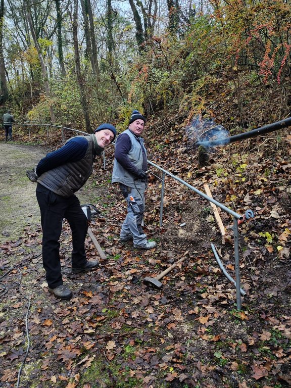 Eine weitere Aufgabe, die mit Bravour gemeistert wurde, bestand darin, den Handlauf am Weg vom Parkplatz zum Jägerheim zu befestigen und über weite Strecken gar neu zu montieren.