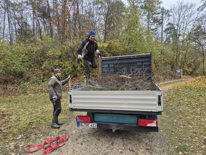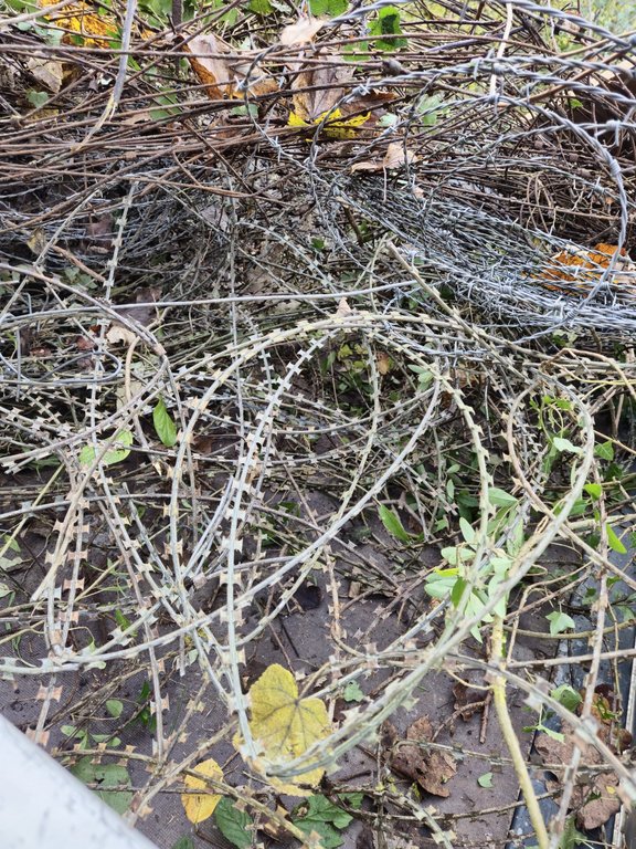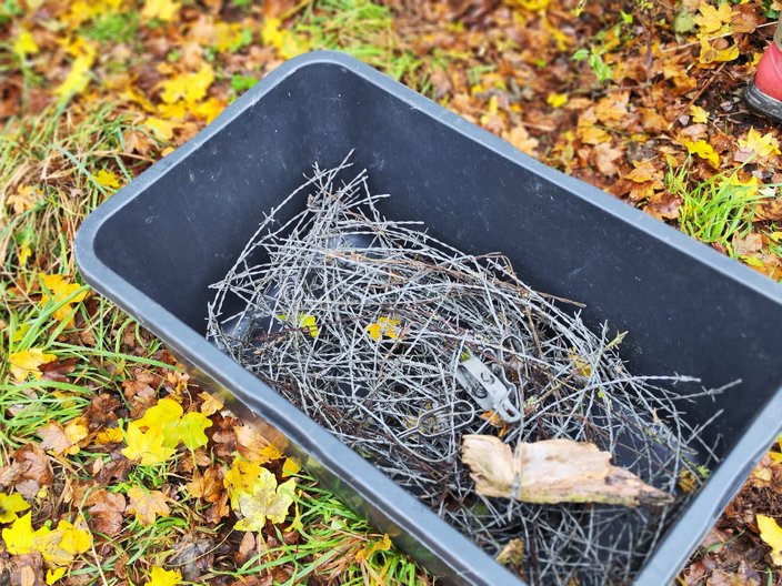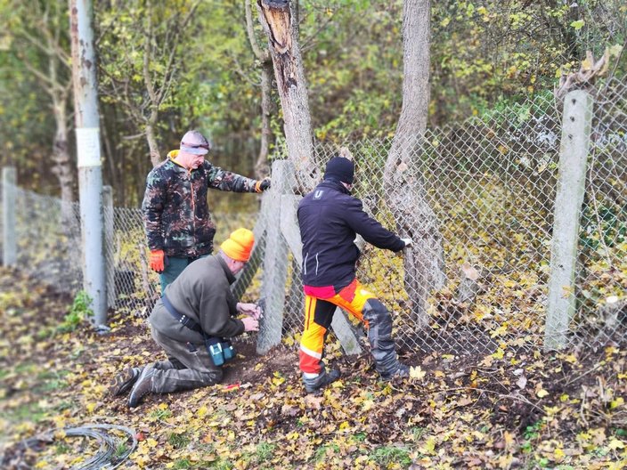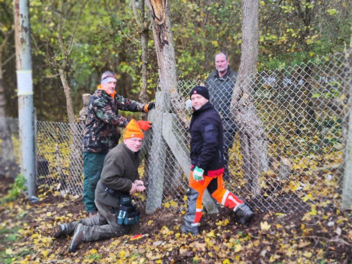 Nachdem beim ersten Arbeitseinsatz unter anderem Hecken, Büsche und Sträucher rund um das gesamte Gelände zurückgeschnitten bzw. Tor und Zaunbereiche freigeschnitten wurden, bestand die Hauptaufgabe in der Instandsetzung der Umzäunung und des Rückbaus des alten militärischen Stacheldrahtes, der noch an einigen Stellen aus lang vergangener Zeit in der Vegetation lag. Alter Stacheldraht wurde beseitigt, Umzäunung wurde geflickt und - wo notwendig - auch gänzlich ausgetauscht und neu befestigt.