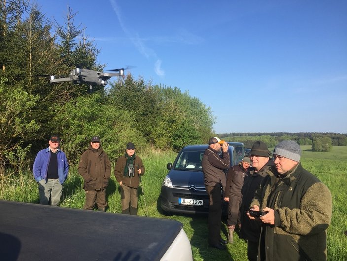 Am Donnerstag wurde Rapp vom Revierpächter nach Weidenstetten gerufen, damit er Wiesen, die von Landwirten zum Mähen angekündigt waren, mit der Drohne nach Kitzen absuche. Unter Mithilfe der örtlichen Revierjäger konnten sechs Kitze gerettet werden. Für Samstag stellte der Pächter die Wiesen seines Jagdreviers zur öffentlichen Drohen-Vorführung zur Verfügung. Landwirte und Jäger waren vom Hegering Lonsee dazu eingeladen. Christian Rapp war bereits am frühen Morgen vor Ort und setzte seine Drohne vor der interessierten Gruppe über einer großen Waldwiese ein.