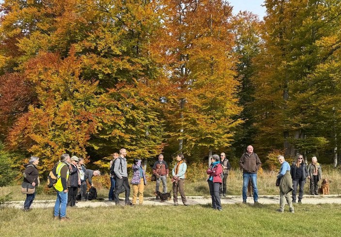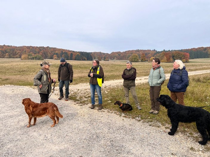 Der ehemalige Truppenübungsplatz im Biosphärengebiet Schwäbische Alb ist heute ein besonderes Schutzgebiet, das seltene Tier- und Pflanzenarten beherbergt. Am 19. Oktober machten sich die Ulmer Jägerinnen – teils mit Partnern und Vierbeinern – gemeinsam auf, dieses Stück Natur zu entdecken. Los ging es um 10 Uhr bei Regina’s Futterkiste nahe Heroldstatt.