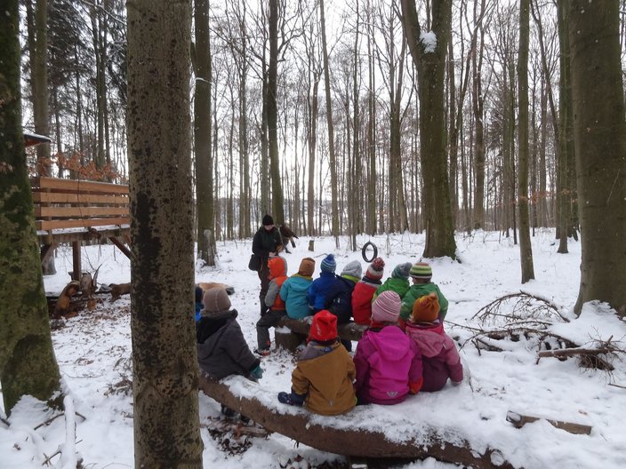 Spurensuche und Spurenlesen im Schnee und ein Tasten- und Fühlen- Spiel mit den Tieren des Waldes ergänzten das praktische Programm.