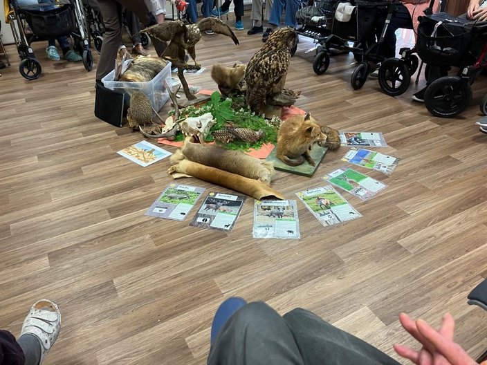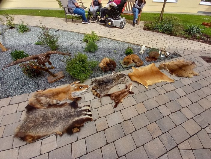 Dort gab es eine Lernort Natur Veranstaltung der etwas anderen Art. Einen Überraschungsnachmittag für die Bewohner mit dem Thema "die Jägerin kommt zu besuch".