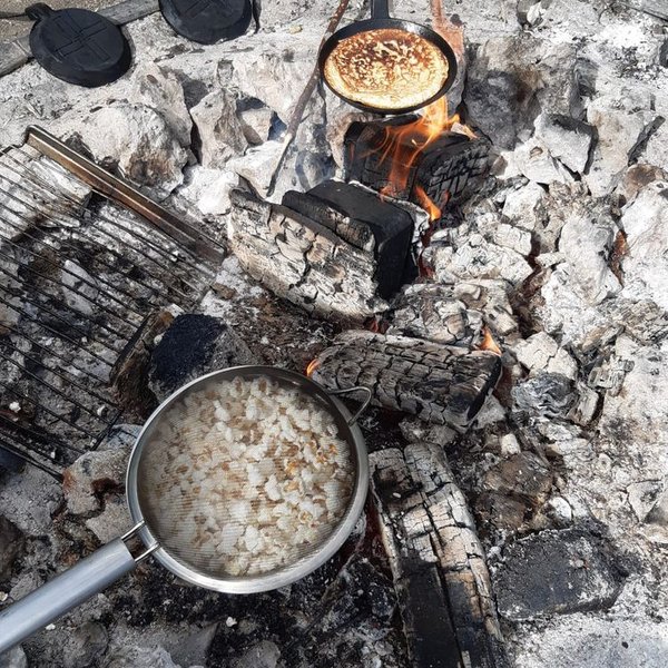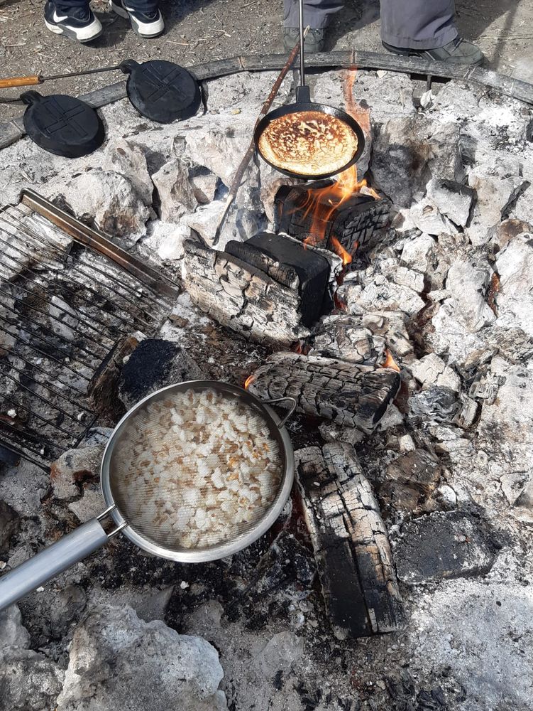 Am Lagerfeuer konnten die Kinder zur Stärkung Pfannkuchen backen und zum Nachtisch wurde Popcorn am Feuer zubereitet.