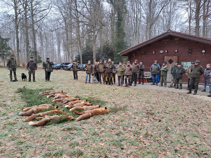 Zum Abschluss der Fuchswoche 2025 haben sich knapp 50 Jägerinnen und Jäger am Sonntag, 2. Februar, beim Waldklassenzimmer im Westerlau in Laichingen eingefunden.