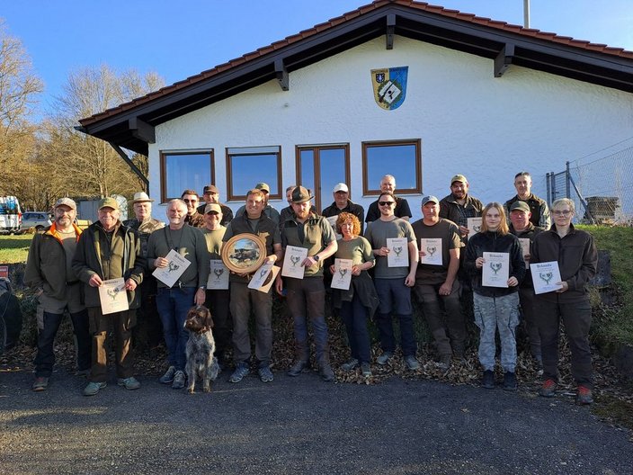 Am diesjährigen Hegeringschießen im Schützenhaus Dullenwang in Zainingen haben 28 Jäger und Jägerinnen teilgenommen. Die Schützen gaben jeweils 5 Schuss auf Fuchs, Rehbock und Keiler ab. Harald Beier war mit 150 Punkten der beste Schütze, gefolgt von Dominic Rüder mit 149 Punkten. Die drei Drittplatzierten Andreas Veit, Ulrich Rapp und Wolfgang Knaupp erreichten jeweils 144 Punkte. Den besten Schuss freihändig auf der 100 Meterbahn trug Tobias Vöhringer mit einem 10er Treffer an. Er durfte die diesjährige Ehrenscheibe mit nach Hause nehmen.