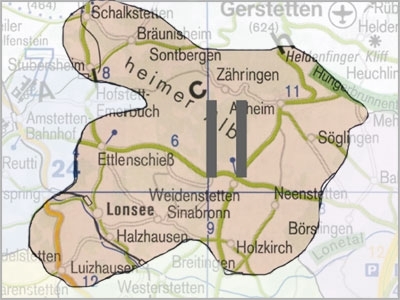 Reviere: Altheim Ost, Altheim West, Bräunisheim, Lonsee, Schalkstetten, Weidenstetten Nord + Süd, Stubersheim, Schechstetter Hau, Holzkirch West, Halzhausen-Sinabronn, Neenstetten Nord + Süd, Luizhausen, Ettlenschieß, Breitingen,